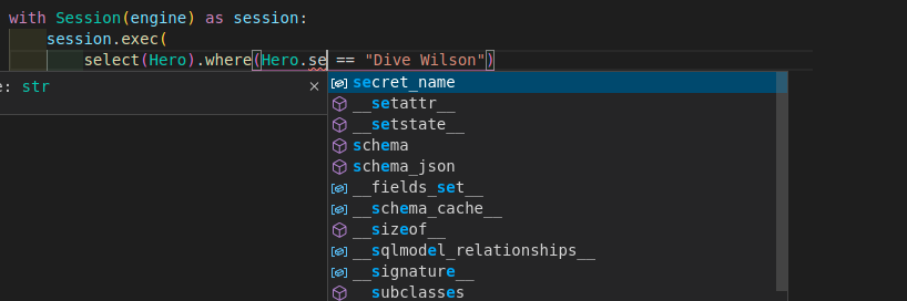 Because we are using standard Python classes and objects, your editor will be able to provide you with autocompletion, inline errors, etc.